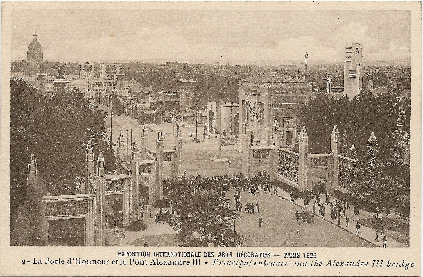 In early November 1925, exactly one hundred years ago, the Exposition Internationale des Arts Décoratifs et Industriels Modernes closed in Paris. It had been quite a show. In six months, some 15 million people had visited an exhibition area occupying 57 acres of central Paris, bordered by twelve grand gateways. Though it was an international fair, French designers and department stores had occupied two-thirds of the pavilions. It is thanks to their work that the event is remembered in connection with one style of design in particular, the style which would later take its name from the 1925 expo: Art Deco.